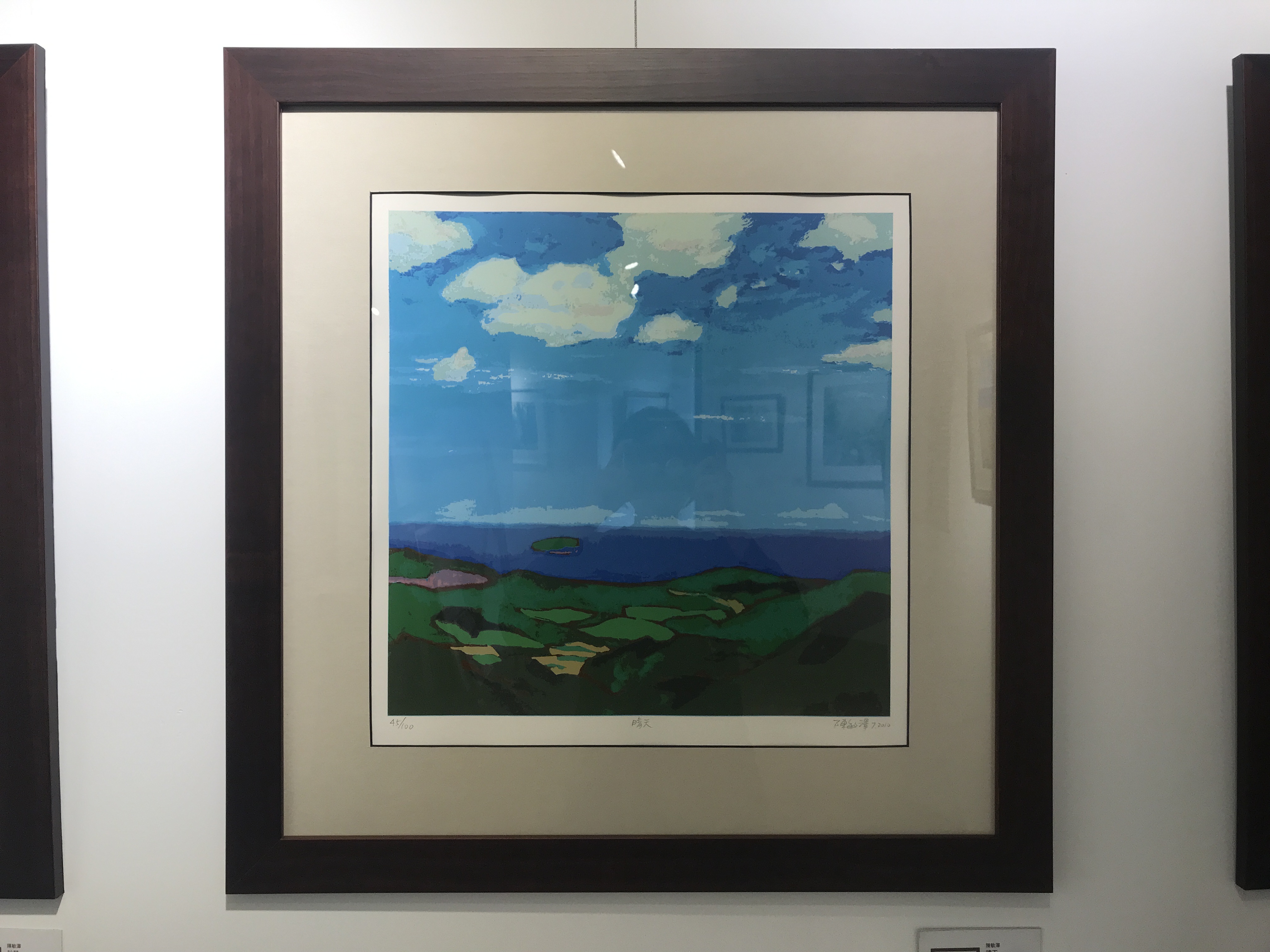 「晴天」Sunny Day ∣ 取景處是台北縣與宜蘭縣交界處附近,北宜公路旁的一小亭子,過路人可以休息並遠眺海景。當然台灣可以欣賞海景的地方非常多,這幅畫的重點其實並非遠處的大海,而是其上的那片青天-想像自己的心,如同青天那般高遠遼闊、無拘無束。
